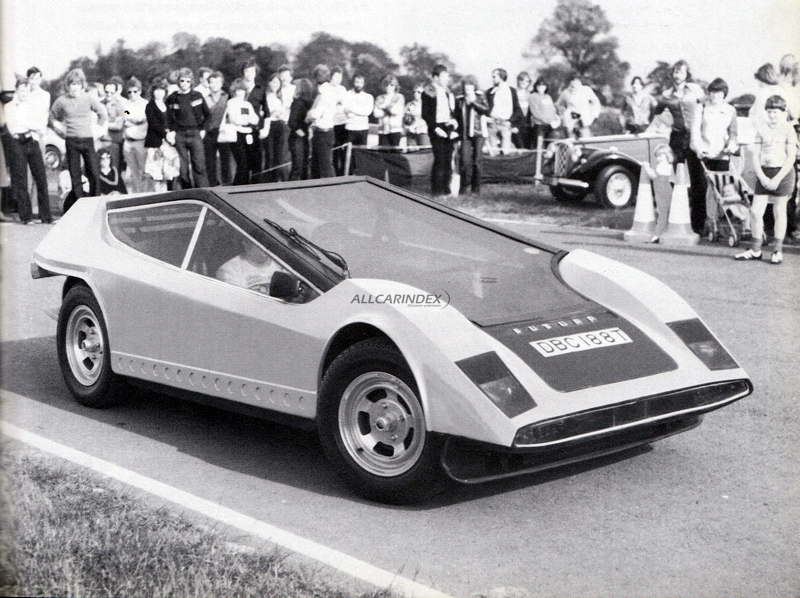 The Jem Futura was designed by Robin Statham, builder of the Minijem. First shown at the 1971 Racing Car Show in London, it was built on a VW floor pan, but had its own glass-fibre floor to ensure rigidity. The most striking feature was its mode of entry through the side-hinged windscreen. Only three body shells were made - the original prototype, a street legal version with headlights in the front wings and a third which ended up in Brazil. The development of the Futura was too costly for Jem Cars which went into liquidation the same year.