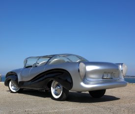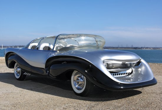 The Aurora featured several advanced safety features for its time, including seatbelts, a telescopic steering column, and foam-filled bumpers mounted on shock rams. The prototype was powered by a 1954 Buick Roadmaster V8 engine, but potential buyers could also choose from Cadillac, Chrysler, or Lincoln V8 engines. The complete vehicle was priced at $15,000, a significant amount considering that a standard V8 from these manufacturers cost around $5,000 during that period.