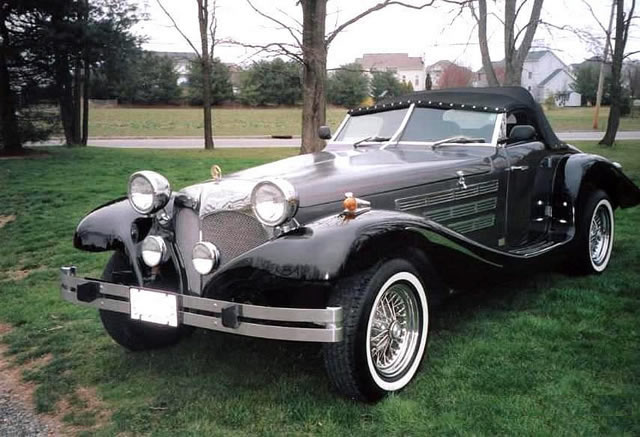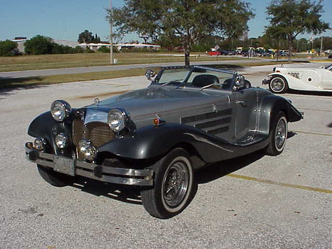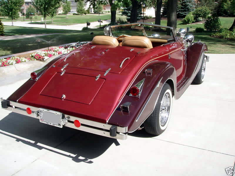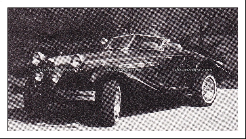 The flagship model of Centaur Motor Corp. was characterized by its resemblance to the Mercedes-Benz 500K, featuring a distinctive beak-like grille. The vehicle was constructed with a fiberglass body that housed a General Motors drivetrain and suspension, combining modern engineering with classic styling.