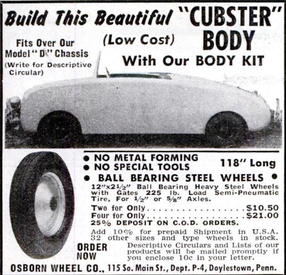 Cubster was an early American kit car brand established in 1949 by the Osborn Wheel Company, located in Doylestown, Pennsylvania. The company focused on producing a unique vehicle that catered to the growing interest in customizable automobiles during the post-World War II era.