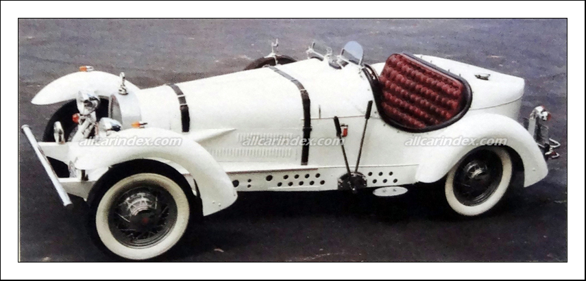 One of the notable projects undertaken by GM Plastics was the development of a Bugatti replica. This vehicle was designed as a prototype for a potential production kit car. It featured a typical replica body characterized by exaggerated mudguard fairings, side-mounted spare tires, and wire wheels.