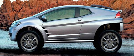 The Fiat FCC concept is powered by a 167 horsepower 2.4 litre 5 cylinder engine from the Fiat Stilo Arbarth, yet despite the concepts rugged appearance the vehicle is purely front-wheel-drive.