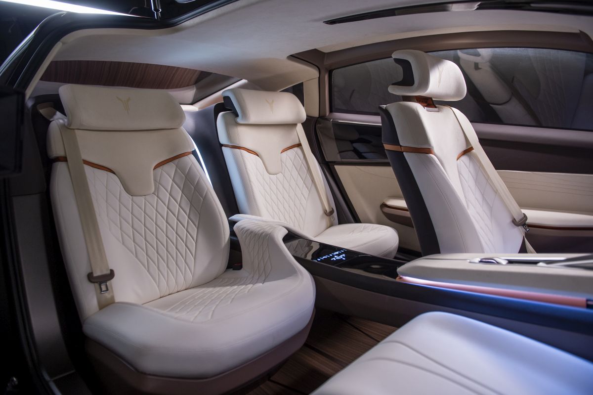 Voyah i-LAND features head-turning interiors with its three-seat layout, offering a station at the rear right end for relax and smart working, as the seat next to the driver has been replaced by an element that can become a table or footrest if necessary.