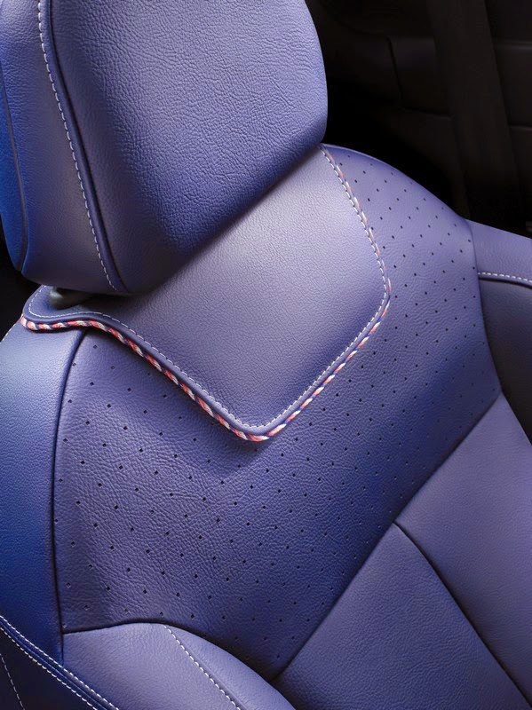 DS 3 & DS 3 CABRIO Ines de la Fressange Paris Concept share the same interior, featuring the three emblematic colours of the union in a carefully matched layout. The emphasis is on personalisation and customisation. The seats are upholstered in Granite Blue grained leather with white topstitching. A leather of exceptional quality that is also found on the headrests, with the same “Aéropostale” signature as on the bodywork. The dashboard is also easily identifiable in Ines Red with an enamel-style emblem. As a final touch of sophistication, protective mats with edging inspired by the “Aéropostale” signature further enhance passenger comfort.