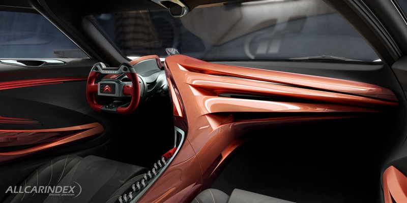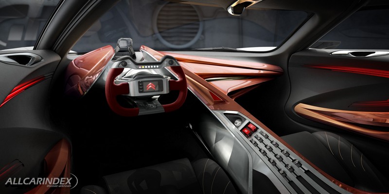 The interior design confirms the vehicle's dynamic and powerful style. The interior of GTbyCITROËN, designed to seat a driver and co-driver, expresses the racing spirit of this concept. The on-board ambience allies rich, premium, extensively worked materials with a more high-tech effect for the driving position, inspired by the world of motorsports.