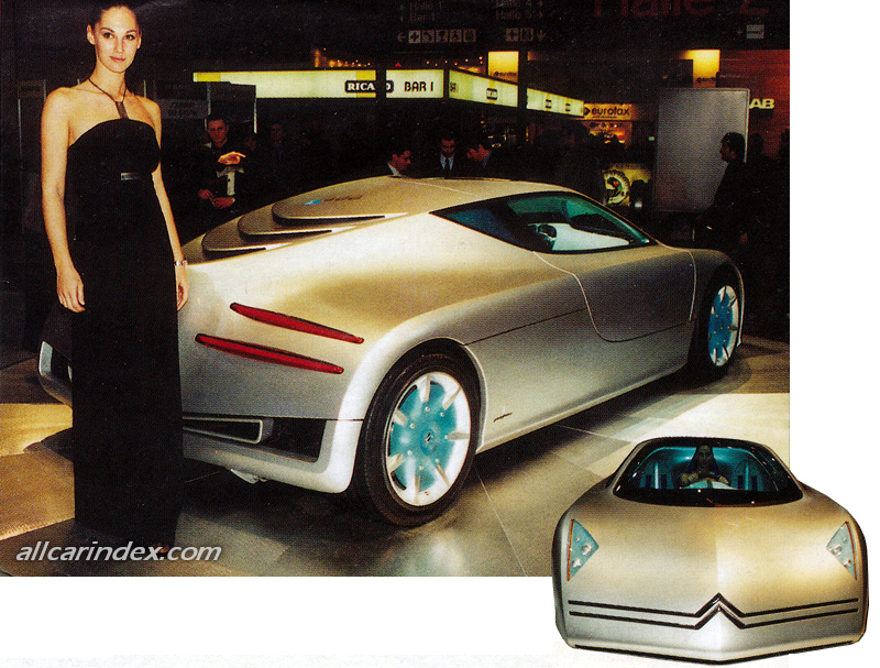 Three-seater research prototype, the first to be conceived on Citroën mechanicals, it is a styling study that develops the theme of the pure mid-engined sports car, a new layout for the French Mark. The styling guidelines, the architecture and the geometry of the project have been realised with full respect for Citroën's philosophy and image. "Best in Show" at the 2001 Geneva Motor Show.
