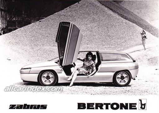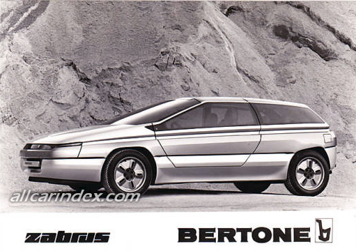 Zabrus (*) is the name of the prototype BERTONE is presenting at the 1986 Turin Motor Show. This is a concept car based on Citroёn BX-4TC mechanicals. The BERTONE-designed BX has been a wild success in all markets (24, 263 were sold in Italy alone in 1985 and the BX accounts for 42,5% of all Citroёn production). So it's easy to understand why BERTONE should want to go back to this theme, this time with greater freedom of expression.
