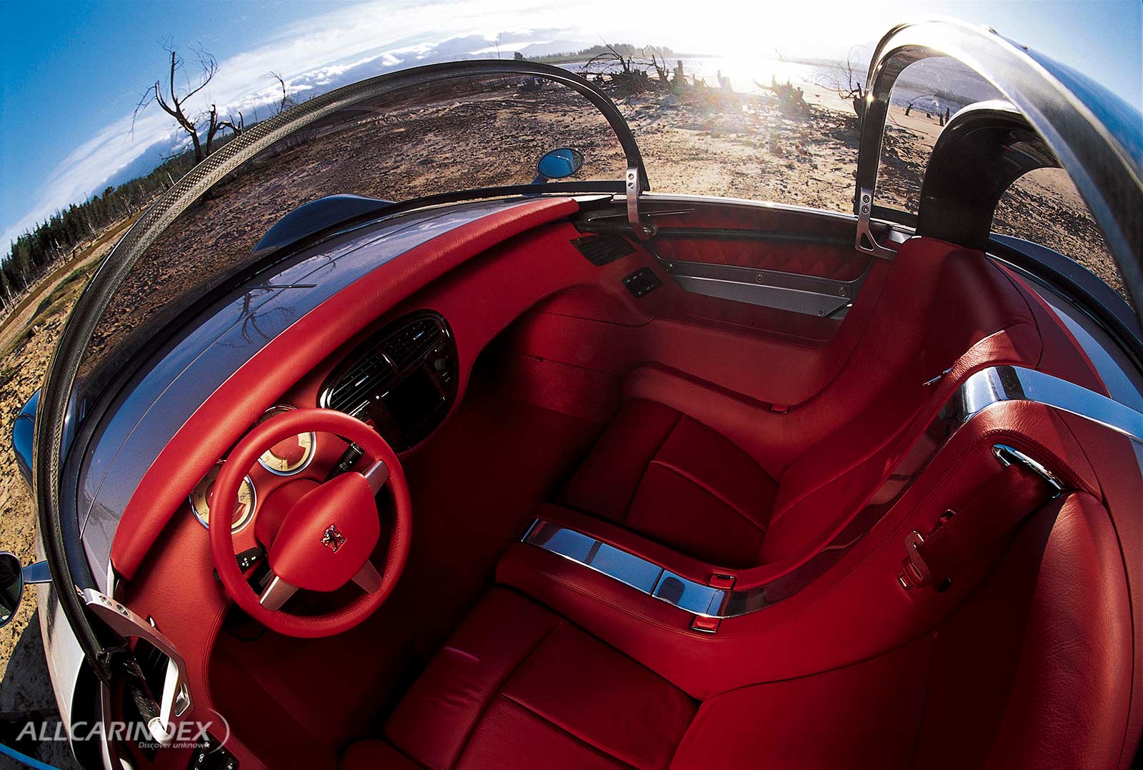 At 4.07 m long, the aptly named car offers the same wheelbase as the sedan, resulting in extremely short overhangs. This muscular front-wheel drive car hides a longitudinally mounted V-6 engine beneath its very long hood, borrowed from the sedan. With unique double-wishbone and rocker suspensions at the front, this two-seater car, weighing less than 900 kg, could deliver tantalizing performance thanks to its power-to-weight ratio. Standing on its four wheels, shod with large-diameter (730 mm) Michelin Pax tires (allowing it to run flat), the 607 Féline, whose carbon fiber body is made of aircraft-style honeycomb panels, can be driven with the windshield closed, partially or fully open, thanks to unique openings. The doors disappear into the fenders, the windshield can slide, and the rear windshield can be retracted.