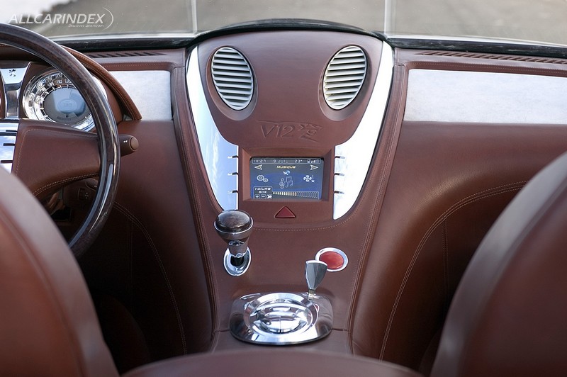 The 6.0 litre V12 engine (368 kW or 500 bhp) is positioned longitudinally behind the front axle; connected by a small propshaft, it transmits its power to a six-speed gearbox placed longitudinally in front of the rear axle.