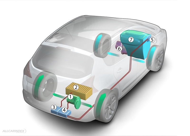 This name represents the hybridisation of a traditional engine (a 2.0 litre HDi FAP with a power of 120 kW / 163 bhp) with an electric motor offering a maximum capacity of 27 kW (37 bhp). This unit is characterised by an original mechanical layout, since the HDi engine is situated in its usual place under the bonnet and drives the front wheels, while the electric motor, placed at the rear under the boot fl oor, drives the rear wheels. Therefore, there are no mechanical components between the front and the rear, everything being controlled electronically (“by wire”), allowing optimisation of space in the passenger compartment.