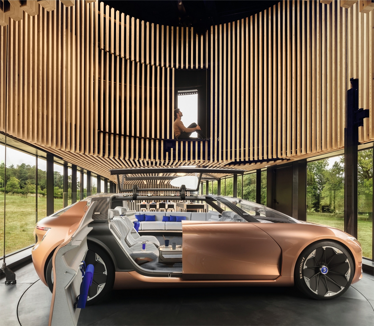 At the motor show, Renault showed the house and concept in static and dynamic modes. In the first scenario, SYMBIOZ drives into the house to become an additional, modular room in the form of a useful, mobile and connected space, parking inside and then outside the physical structure.