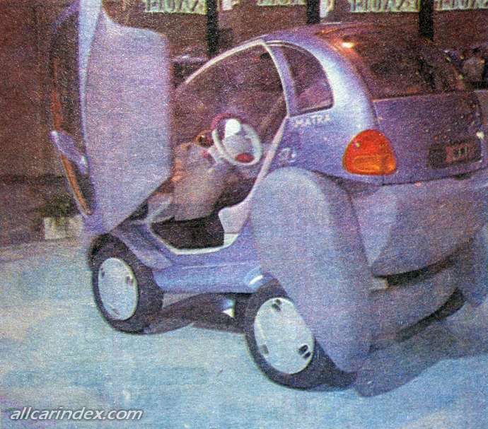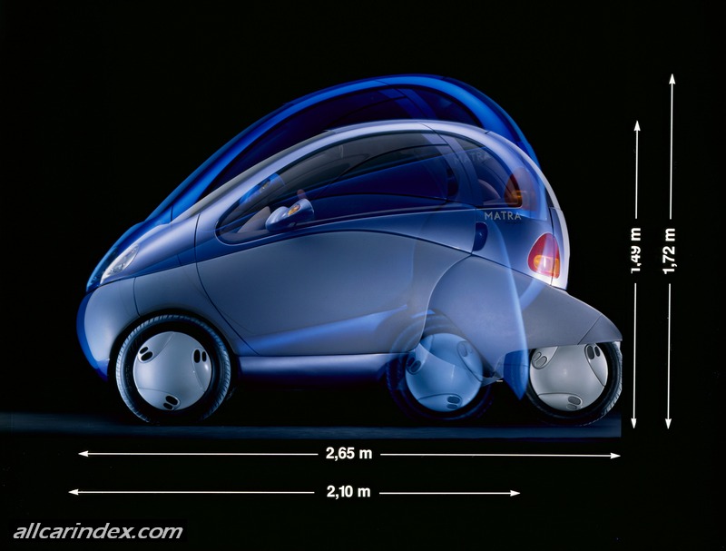 Zoom is an urban and suburban Concept car born of common research by Renault and Matra into modern electric vehicles. More than just a perfect mini-sized city car, an ideal two-seater urban runabout, Zoom is a vehicle which is 100 percent in harmony with the modern city environment and its attendant ecological and safety constraints. It combines environment-friendly electric propulsion with a specific architecture designed to minimize the vehicle footprint.
