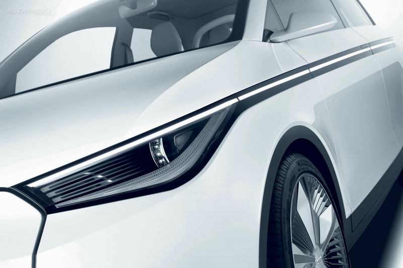 The Audi A2 concept is just 3.80 meters (12.47 ft) long, 1.69 meters (5.54 ft) wide and 1.49 meters (4.89 ft) high; even so, it makes an elegant, powerful and sporty impression on the street. Its clean appearance concentrates on the essentials; all details are subtle but shaped for visual impact. The dark glass roof of the white-painted show car switches to transparency with the push of a button.
