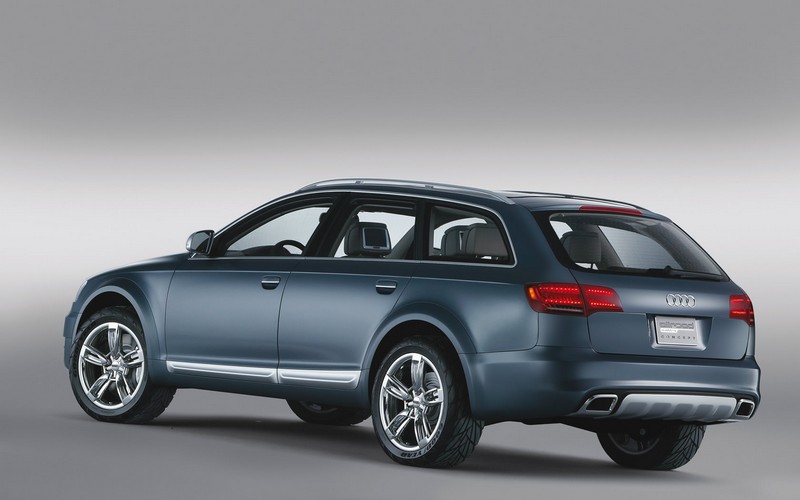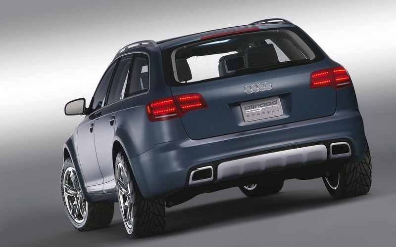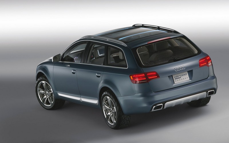 In its design, the Audi allroad quattro concept clearly accentuates the supreme function and elegant sporting character of the A6 Avant bodyshell in its own distinctive style. The wide track and the moderate increase in body height come together in perfection to provide a muscular, truly unique silhouette. The underfloor protection made of stainless steel in a special rib-type structure, striking bumpers, and distinctly flared wheel arches clearly bear testimony at very first sight to the off-road talents of the allroad quattro concept.