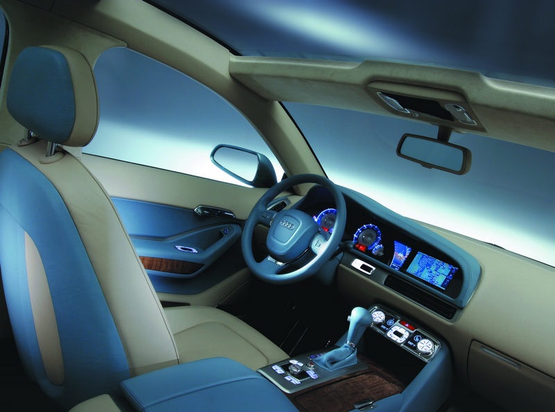 The gear shift gate and the Audi-MMI unit (Multi Media Interface) are located conveniently and ergonomically for the driver. By dividing up the center console asymmetrically in this way, space is created on the front passenger’s side for a convenience package comprising two cup holders and a shelf for small items. There is a cold-store compartment under the split armrest.