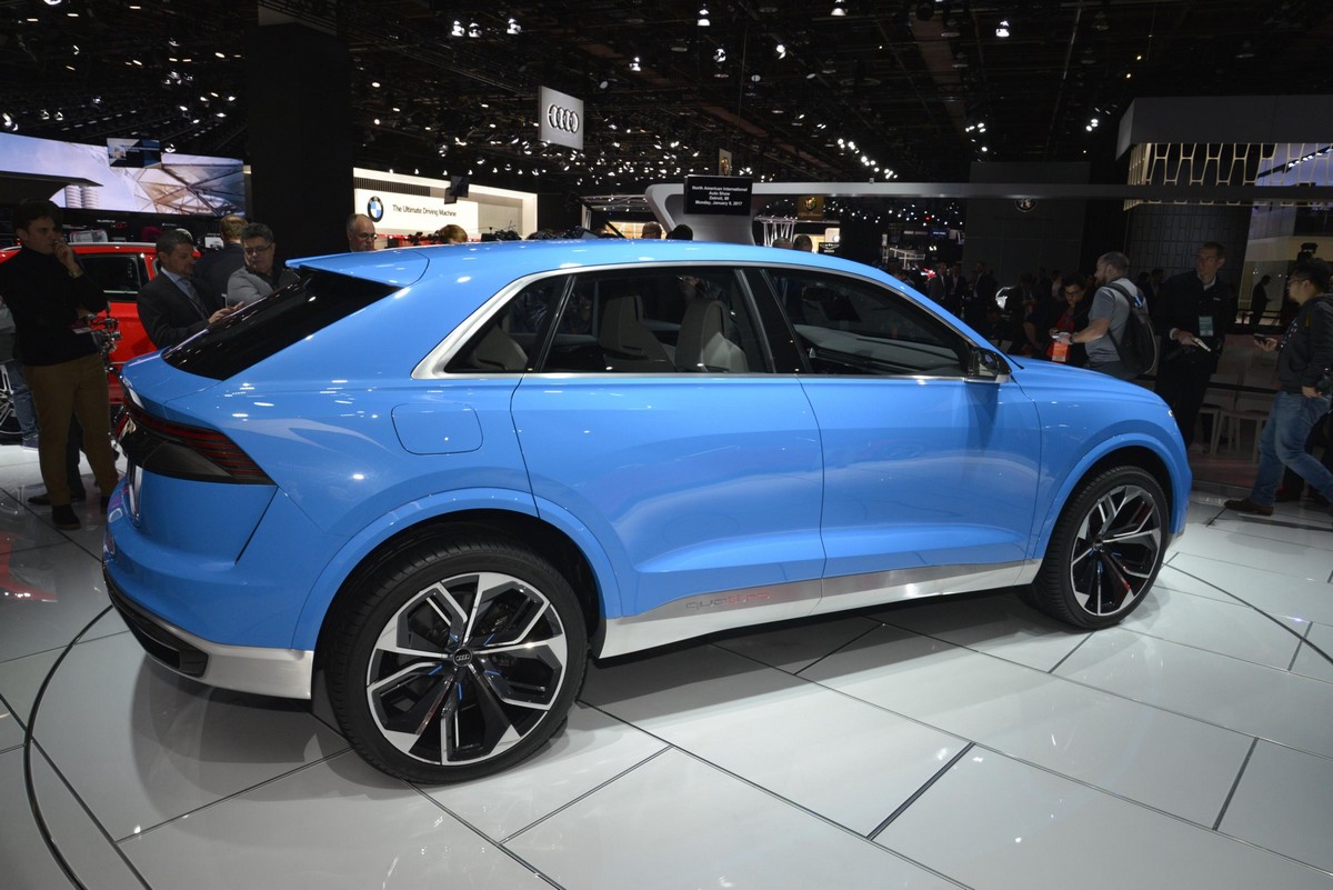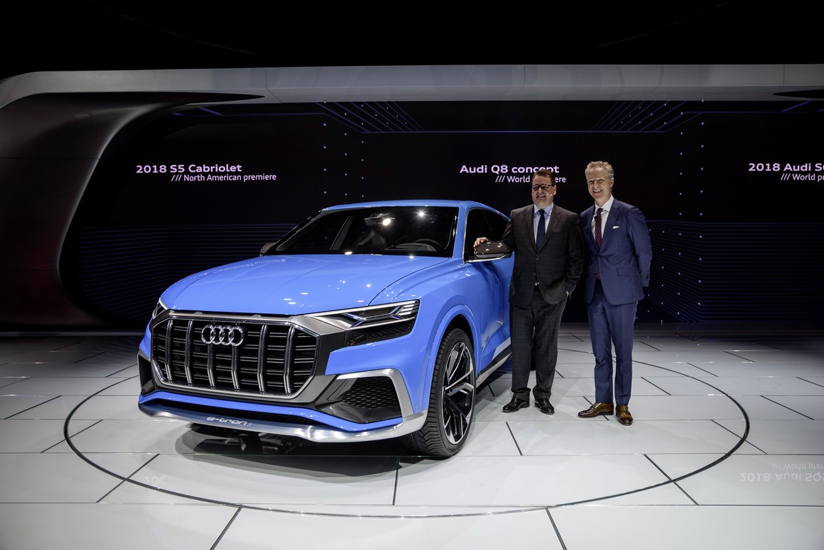 Dynamic, highly efficient and extremely comfortable: Audi presents the Audi Q8 concept at the North American International Auto Show (NAIAS) 2017. With this model the premium manufacturer is tapping into a new segment for the full-size class – an elegant alternative to the robust presence of a classic sport utility vehicle. The Q8 concept stands for maximum prestige. It combines the spaciousness typical of an SUV with the emotional lines of a coupe. Propulsion is provided by a powerful, yet highly efficient plug-in hybrid with 330 kW of system output and 700 Nm (516.3 lb-ft) of torque. The concept car is the basis for a production model that Audi will launch on the market in 2018.
