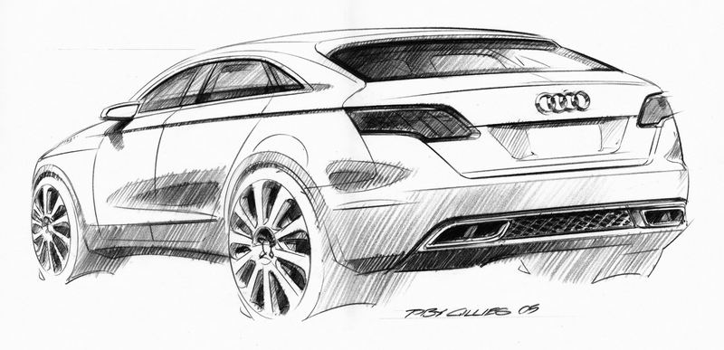 The dynamic line above the sill, as well as the shoulder line, defines clearly horizontal overall proportions that are emphatically road-centred. A new element to Audi is the arched capping line, extending between the front and rear wheel arches.