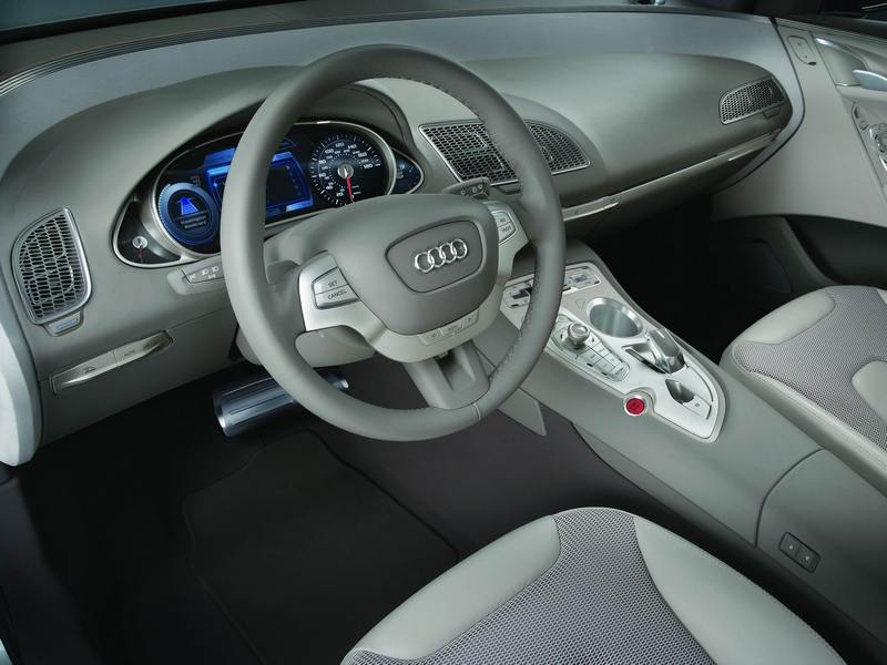 This vehicle interprets the architecture of the Audi interior in a novel way. The characteristic features include the stimulating interplay of proportions and dynamism. The instrument panel envelops the driver's and front passenger's seats in a wide, horizontally split arc. The controls and displays in the dash panel and on the centre console come across on the one hand as organically integrated and on the other as neatly structured and functional.