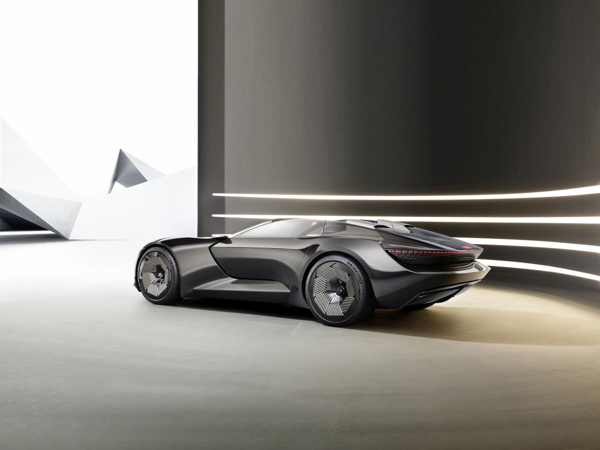 An electric motor positioned on the powered rear axle is responsible for delivering power to the wheels of the Audi skysphere. A total of 465 kilowatts of power and 750 Newton meters of torque have an easy time with the roadster, which only weighs around 1,800 kilograms. The weight distribution of around 60 percent on the powered rear axle results in ample traction and acceleration from 0 to 100 km/h in just four seconds, if required.