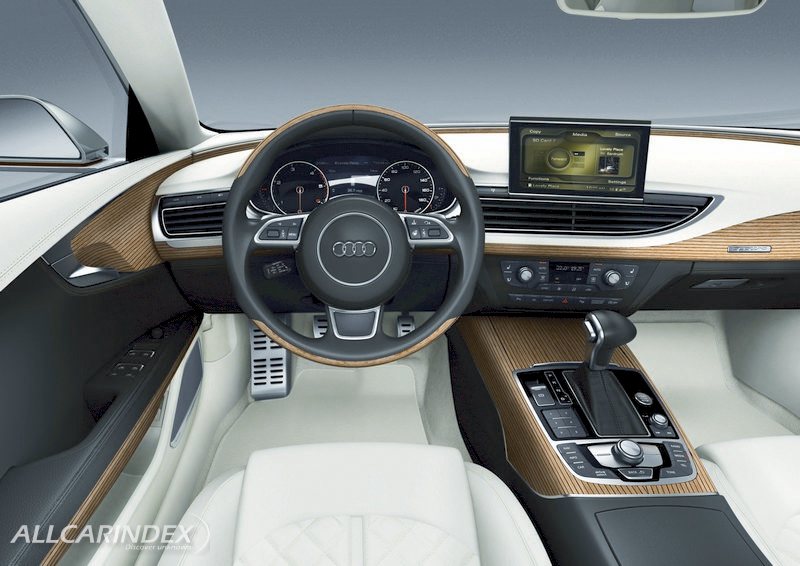 The interior design is tidy and downright purist yet elegant at the same time. The large glass roof underscores the width and feeling of spaciousness. In the driver-oriented cockpit, the air vents, instrument cluster and retracting MMI monitor are outlined by a filigree aluminum border.