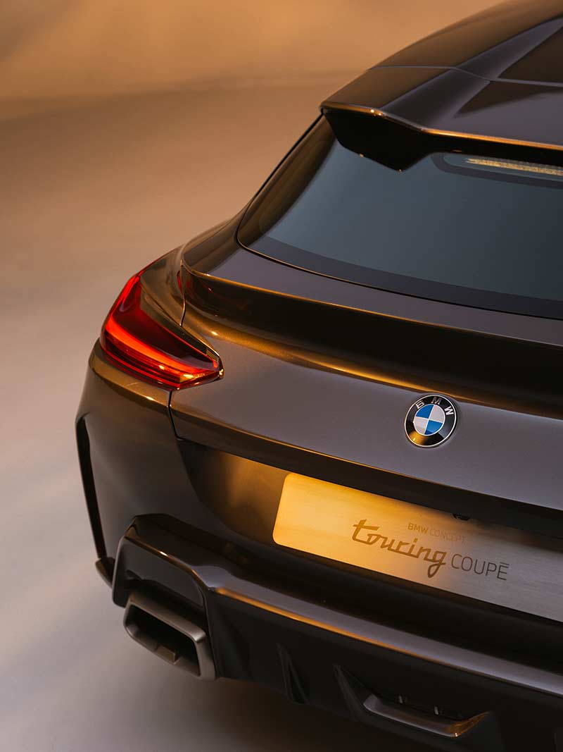 The hand-crafted, one-of-a-kind BMW Concept Touring Coupé unites a body concept steeped in tradition with the technology of a purist modern-day sports car. Its proportions and name are reminiscent of the BMW 328 Touring Coupé that won the Mille Miglia endurance race back in 1940. The functionality of the shooting-brake concept is a nod to the BMW 02 Series model variants of the early 1970s, which featured “Touring” in their name to distinguish them from sedans. The styling of the signets on the rear and inside this unique vehicle was inspired by the model inscription of this historic predecessor. The BMW Concept Touring Coupé is powered by the brand's hallmark six-cylinder in-line engine, with performance characteristics and refinement that confirm its status as a symbol of pure, unadulterated Sheer Driving Pleasure.