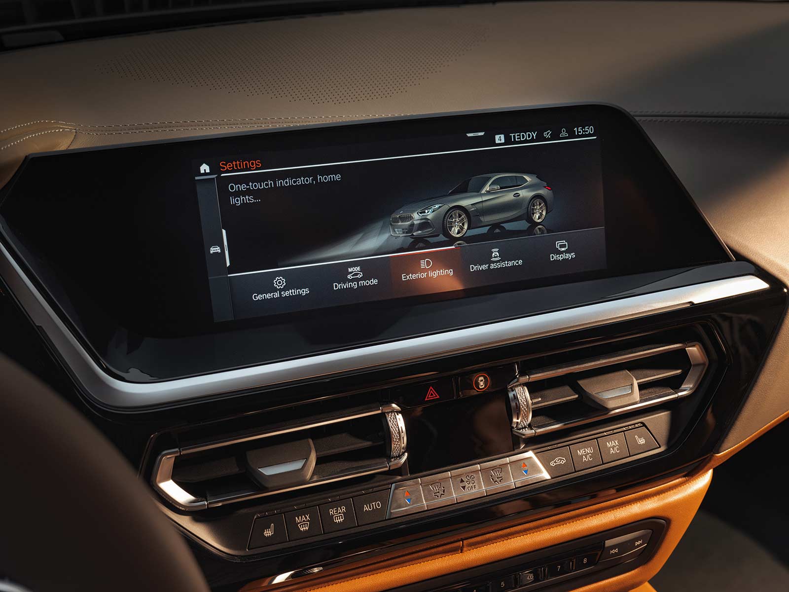 The interior ambience of the BMW Concept Touring Coupé is defined by the brand’s usual driver orientation in the cockpit, with maximum attention to the choice of materials, colour scheme and workmanship. The exclusive bi-colour option from Italian leather workshop Poltrona Frau divides the interior horizontally into two distinct colour segments: In the upper section, a dark brown tone aids concentration while driving; in the lower section, a light saddle brown brings comfort and warmth into the interior.