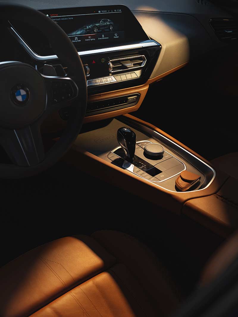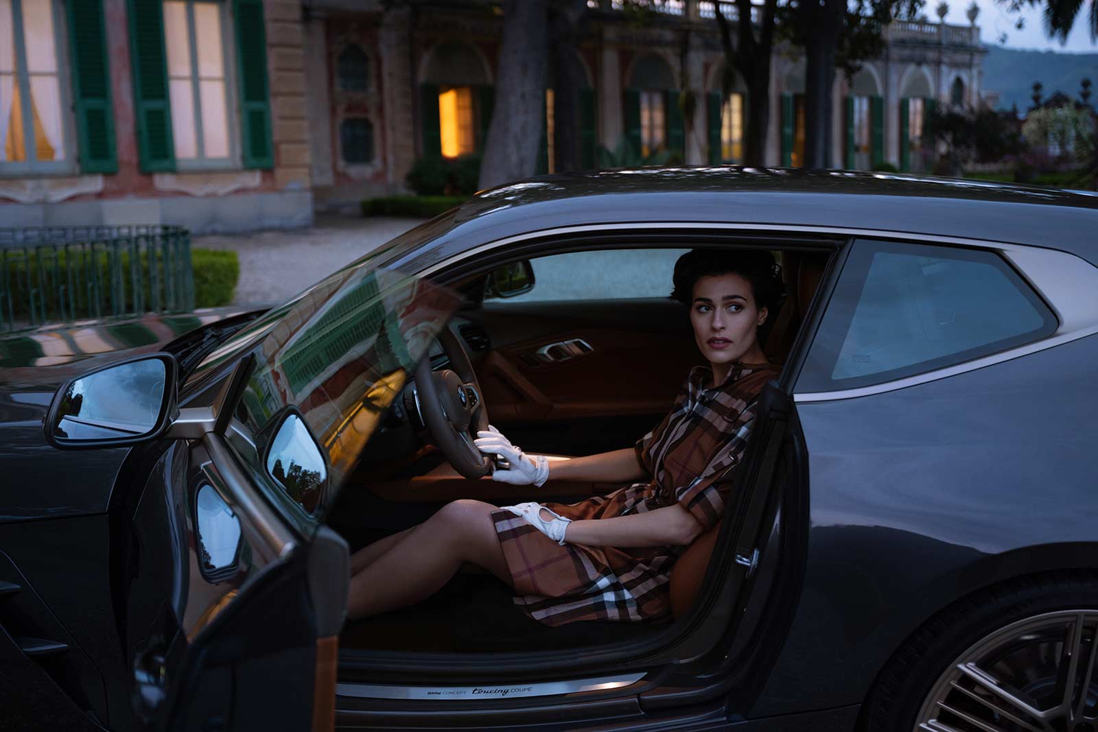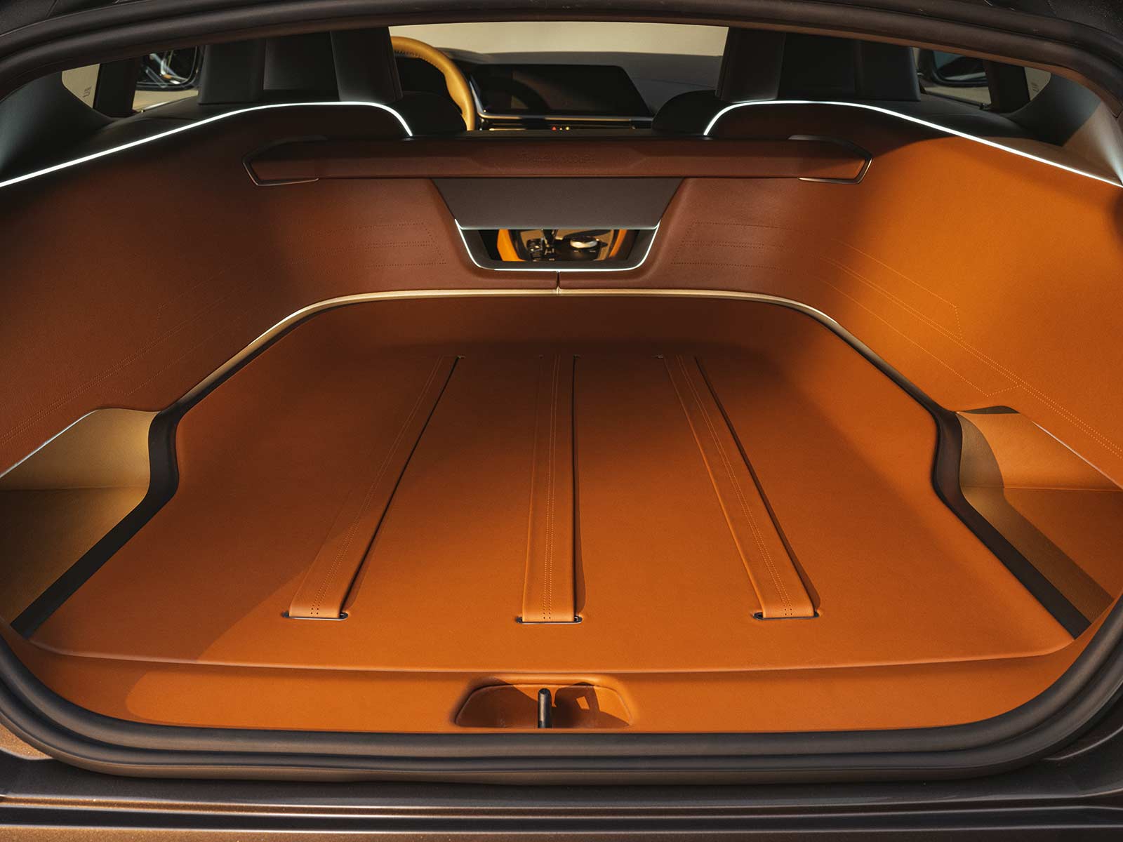 BMW Design has reimagined the traditional body shape of an elegant sports car, giving the vehicle a shooting brake concept. In the interior, precisely crafted leather surfaces from Italian manufacturer Poltrona Frau create a luxurious ambience. The compartment behind the seats provides ample room to stow luggage for spontaneous trips; the luggage itself was also exclusively custom-made at the Schedoni leather workshop in Modena.
