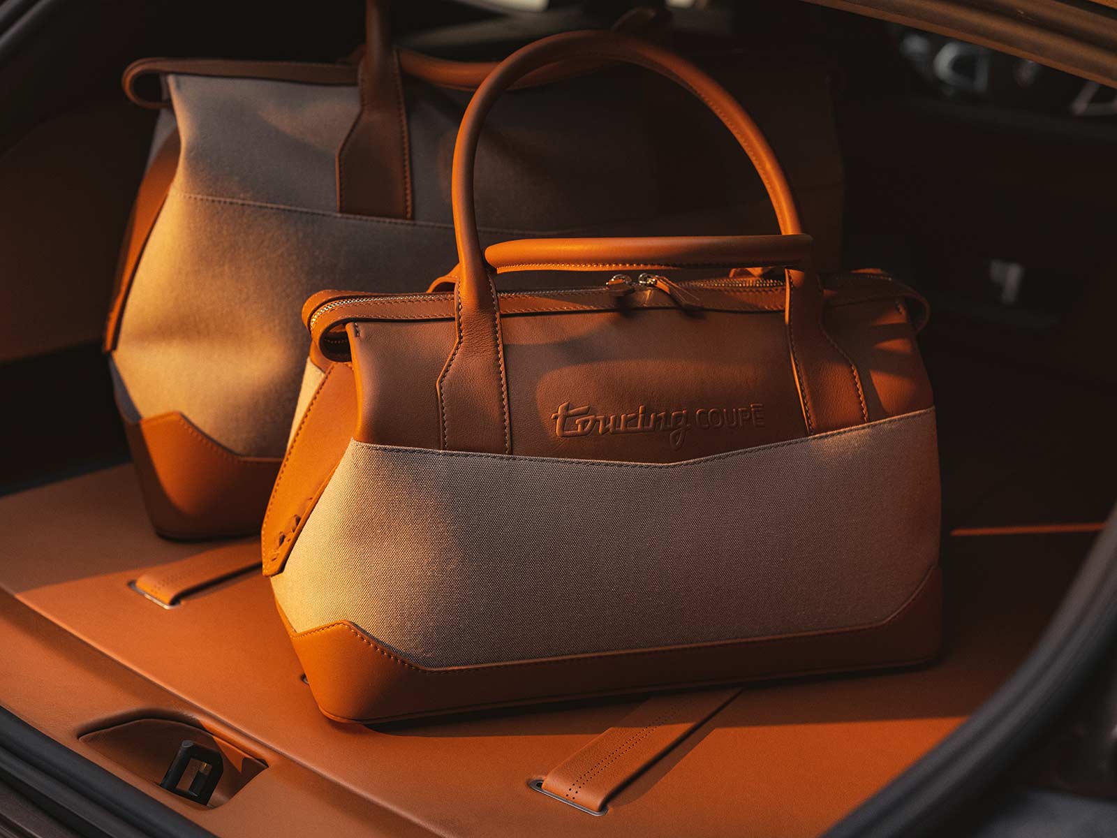 High-quality workmanship and attention to detail also characterise the luggage designed exclusively for the BMW Concept Touring Coupé by the long-established Schedoni leather workshop in Modena. The custom-made set consists of two large and one small weekender bags, plus a garment bag, all of which are perfectly coordinated with the vehicle.