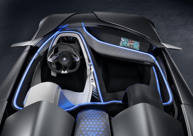 In addition to the dynamic charisma generated in typical BMW style by a long bonnet blending seamlessly with the windscreen, the long wheelbase and the seating positions set well back, the design of the concept vehicle visualises the fusion of exterior, interior and environment, made possible only by BMW ConnectedDrive. Surfaces, strongly expressive and powerfully taut, are enhanced by distinctive flowing lines. The layering principle, which requires that individual components take on a number of tasks, has been implemented both in the interior and the exterior. Sensors integrated into the headlights and the rear lights assist in monitoring the traffic situation and the environment. Antennas instead of wing mirrors transmit information to the outside world and capture navigation data.