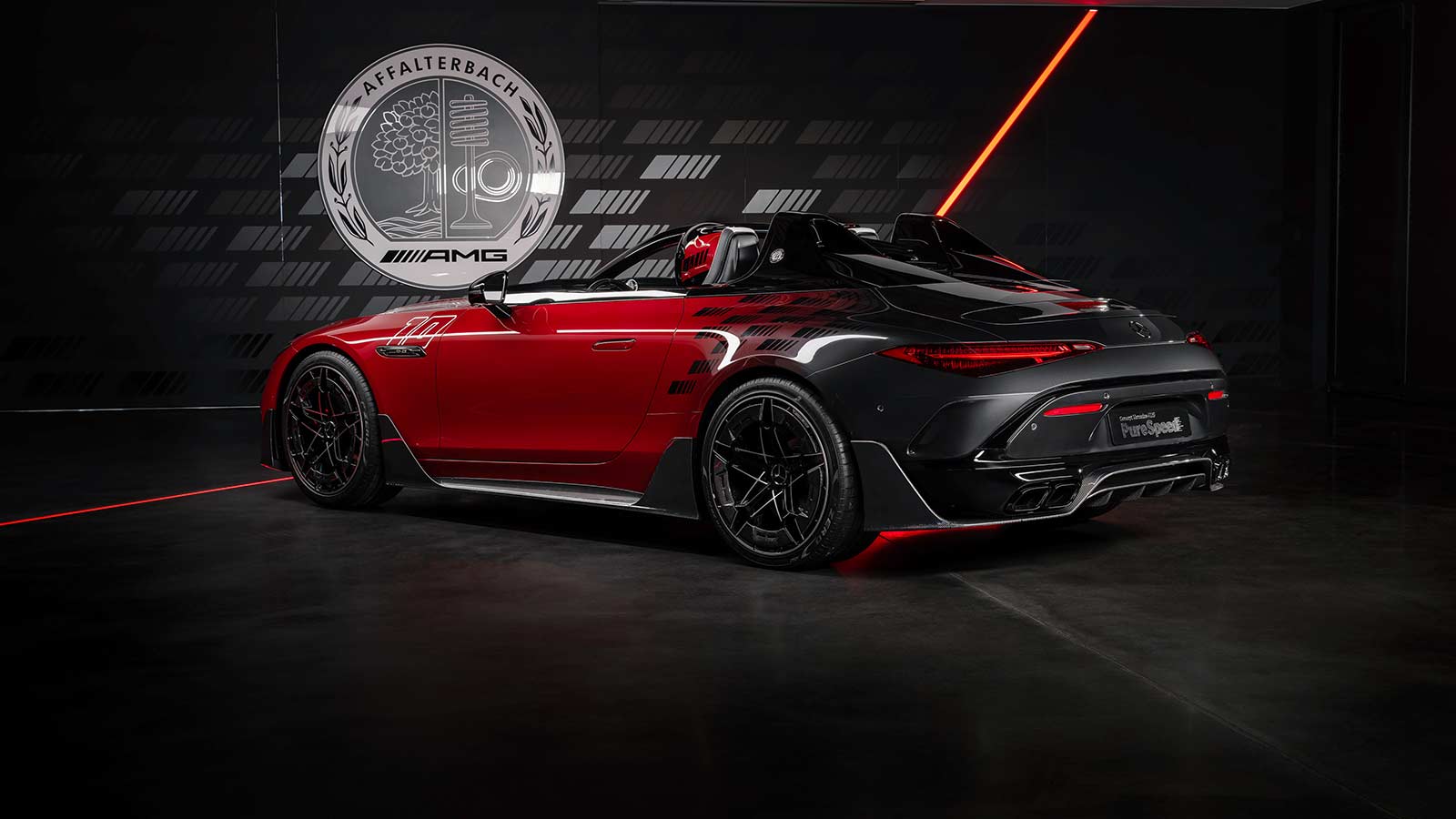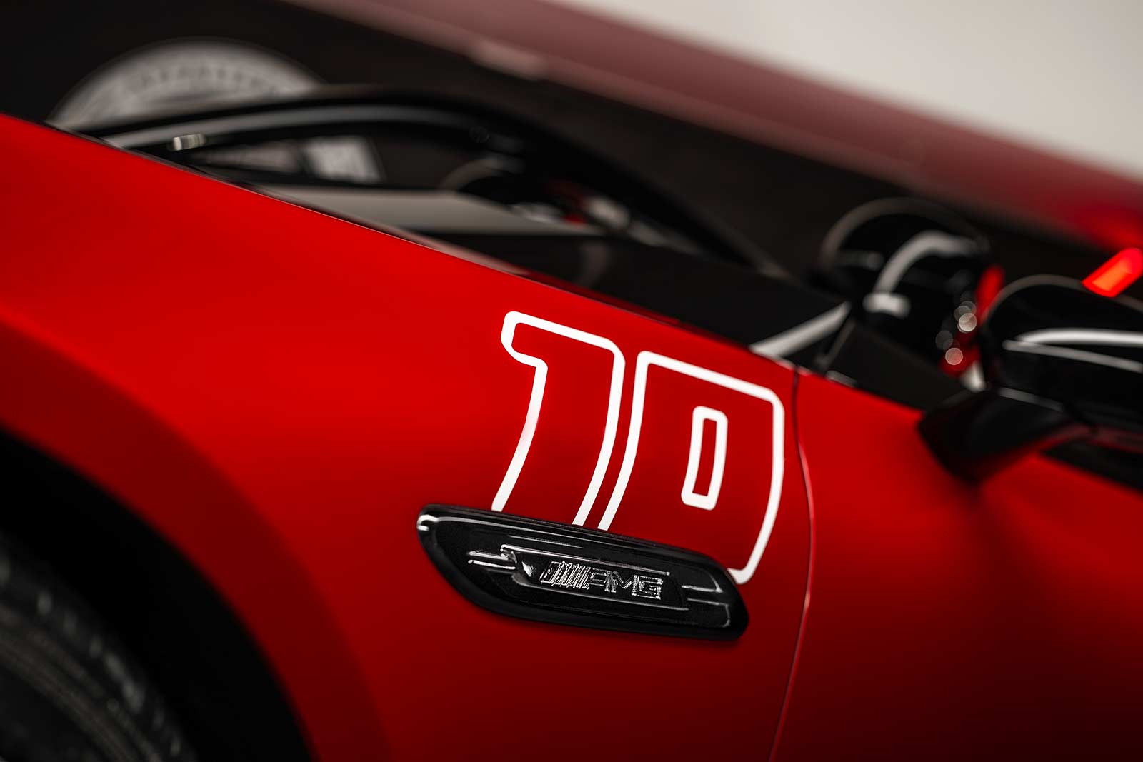 The eye-catching paintwork – in a colour gradient from Le Mans red to graphite grey with a black AMG pattern – alludes to the colour scheme of the victorious Mercedes car at the 1924 Targa Florio race in Sicily. It was painted red, which was typically reserved for Italian vehicles. German race cars were traditionally painted white at the time. The red paint was meant to deter local fans from impeding the car’s progress in the race. The coup worked. After 6:32:37.4 hours and a race distance of 432 kilometers, the victorious Mercedes 2-litre race car with the number 10 crossed the finish line in first place with Christian Werner behind the wheel. The number 10 can also be found on the front wings of the Concept Mercedes‑AMG PureSpeed and refers to that Targa Florio victory 100 years ago.