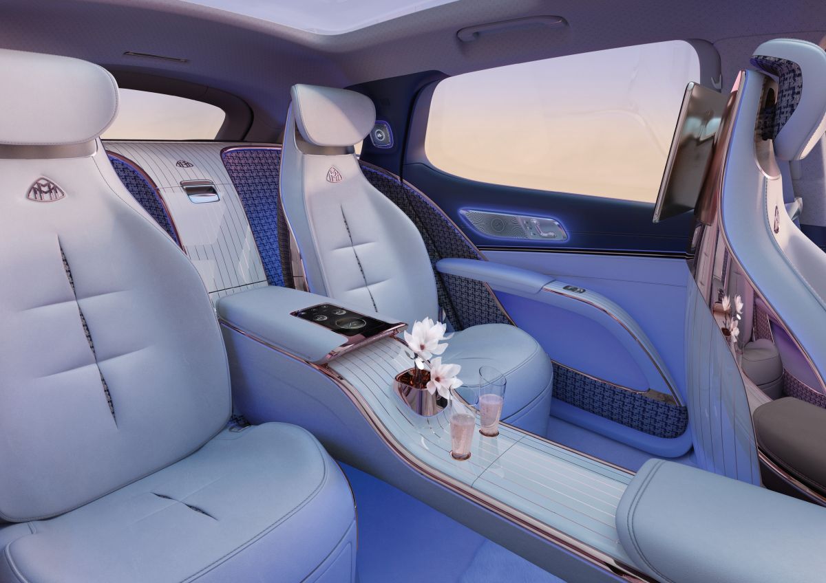 The aerodynamically optimised side running boards bear a customised inlay with the Maybach emblem. Generously dimensioned 24-inch light-alloy wheels in the Maybach “bowl” design – with five short spokes and a flat centre section – as well as Maybach lettering, emphasise the exclusive appearance of the all-electric SUV.