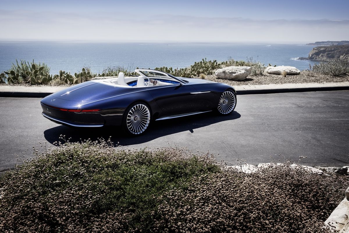 With its generous dimensions, the Vision Mercedes-Maybach 6 Cabriolet (length/width/height: 5700/2100/1340 mm) continues the series of visionary design show cars from Mercedes-Benz. So far these include the Vision EnerGâForce (Los Angeles, November 2012), AMG Vision Gran Turismo (Sunnyvale, 2013), Vision Tokyo (Tokyo 2015) and Vision Mercedes-Maybach 6 Coupé (Pebble Beach 2016). Thanks to the global nature of the Mercedes-Benz Design function, these concept vehicles take cues from local trends in design, culture and mobility and make these the focal point of the respective mobility concept. At the same time, these show cars are looking far into the future.