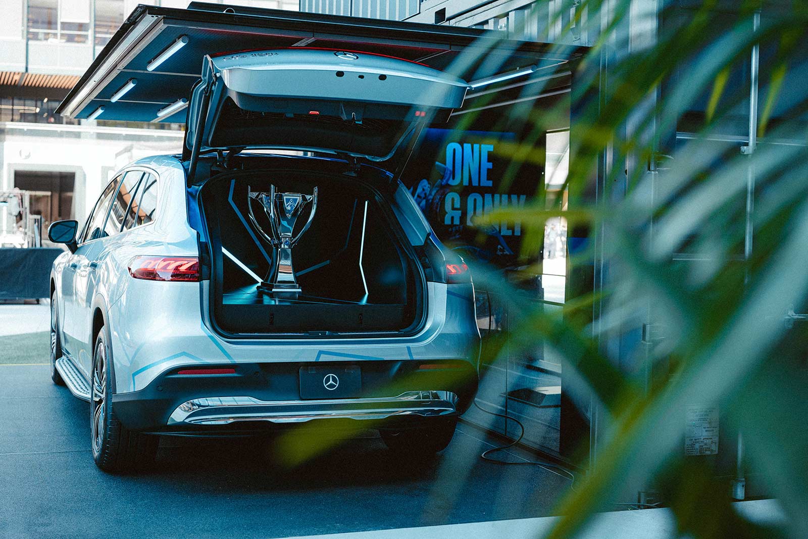 After six weeks of group and knockout phases, the highlight of League of Legends Worlds is coming up on 5 November – the final at the Chase Center in San Francisco. In addition to the Worlds trophy, the winning team will also receive the iconic Championship Ring designed by Mercedes‑Benz with a lasting diamond in the center of the ring. In addition, Mercedes‑Benz will be the central part of the Riot Games Fan Village in San Francisco with the Mercedes‑EQ House. On an area of 250 square meters, the brand with the star will not only provide exclusive insights into the world of Mercedes‑Benz. But will also present a Mercedes‑EQS SUV alongside the virtual showcar and the Championship Ring. This was used as a trophy carrier during the Worlds and transported the Summoner’s Cup from New York to San Francisco via Atlanta. In the vehicle on-site, visitors can marvel at the integration of design elements in the League of Legends look into the MBUX digital infotainment system.