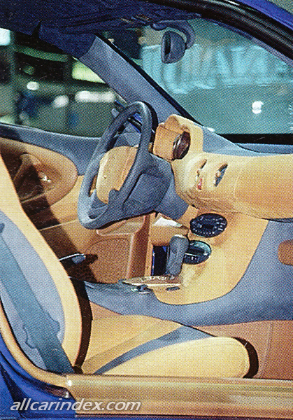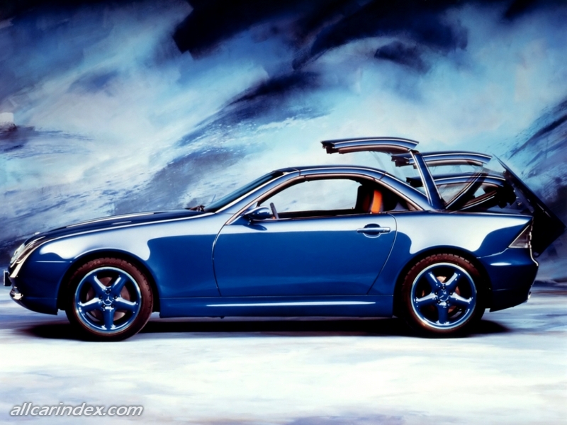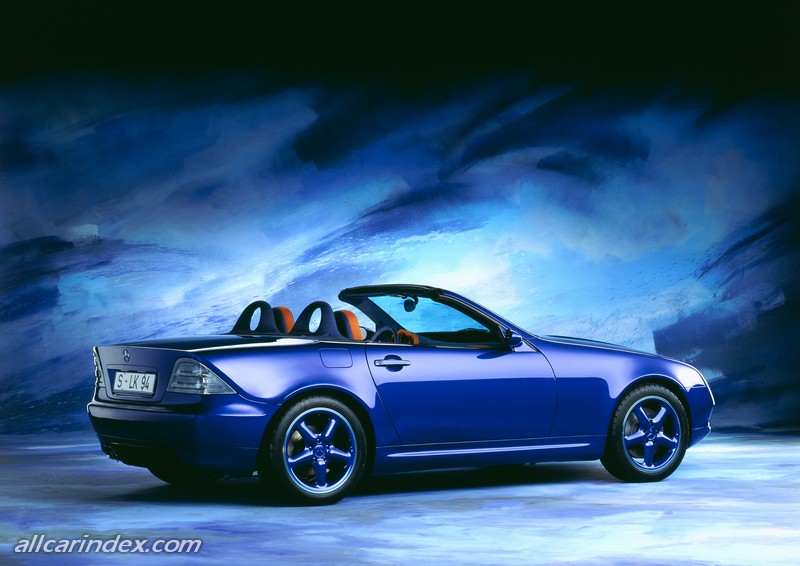 The second SLK concept exhibited a different interior. Appropriately in light of the venue – Paris – the keynote was elegance, with plentiful luxurious leather trim. As on the outside there was a preponderance of blue. This was a salute to the host country, since blue was the traditional color of French racing cars. There was no attempt to be too fashionable, however. "We have to remain true to ourselves," commented designer-in-charge Peter Pfeiffer, "we don't want to pretend to be something we're not, i.e. fashion designers." For the most part, the bodywork of the second SLK concept differed from the first only in minor details, although it did sport exposed roll-over bars and the aforementioned vario roof, which folds down into the trunk at the touch of a button.