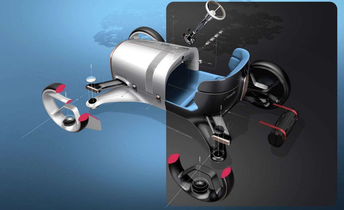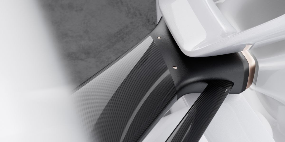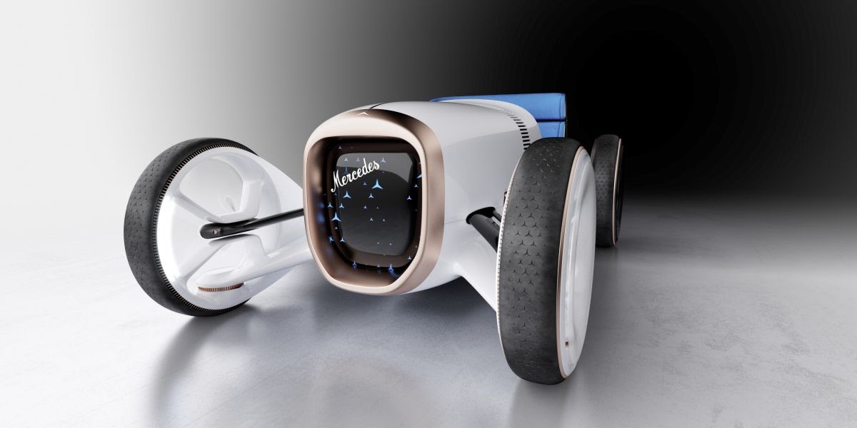 The "Vision Mercedes Simplex" reinterprets the historic Simplex as a two-seater with freestanding wheels, an alternative drive, exciting User Interface and a thrilling design. Its vehicle body with the dominant horizontal alignment sits as a monocoque amid the four large wheels, which form the outer points of the vehicle. The resolutely vertical colour separation into a white front section and a black rear section follows the historic example. The transparent trims on the wheels reflect lightness and efficiency, as do the aerodynamic surface areas between the front wheels and the vehicle body. The entire sculpture lives from the interplay between clearly and powerfully drawn surfaces and precise technical details.