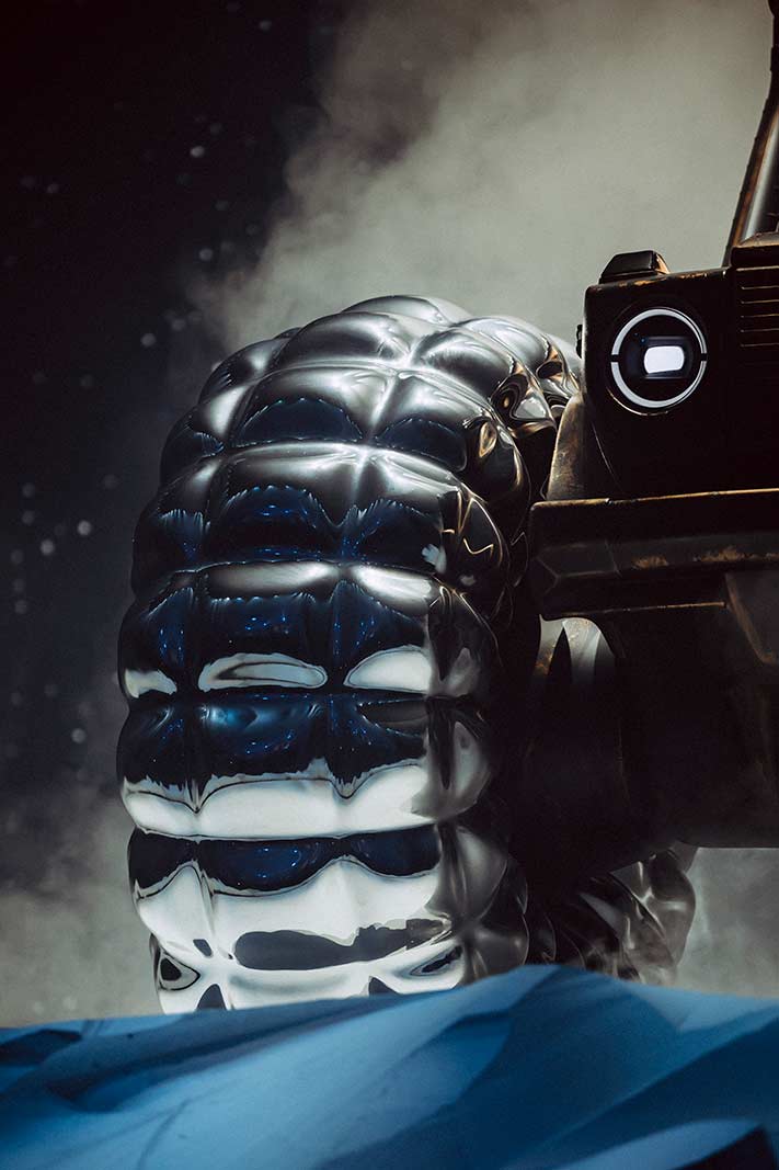 “The collaboration with Moncler inspired us to create a real iconic sculpture on wheels – a very bold design statement: our PROJECT MONDO G. Based on our design philosophy Sensual Purity, this art piece merges extremely contrasting forms and surfaces: spacecraft shiny materials with a used patina look; strong geometry of the G-Class with organic forms of Moncler puffer jackets. Two strong luxury brands offer an extraordinary new experience by combining automotive and fashion world united in one piece. Because of over-dimensional and exaggerated language of forms it’s polarizing art to set new impulses and trends.”