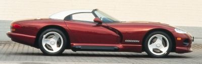 The ruby red metallic Viper "Cocoon" can be driven in three variations: completely open, without B-column lineal bars, very elegant and classic; half-open with assembled B-column lineal bars, as a practically draught-less, all weather cabriolet, and, closed with lateral arch between the lineal bars and fabric covered roof.