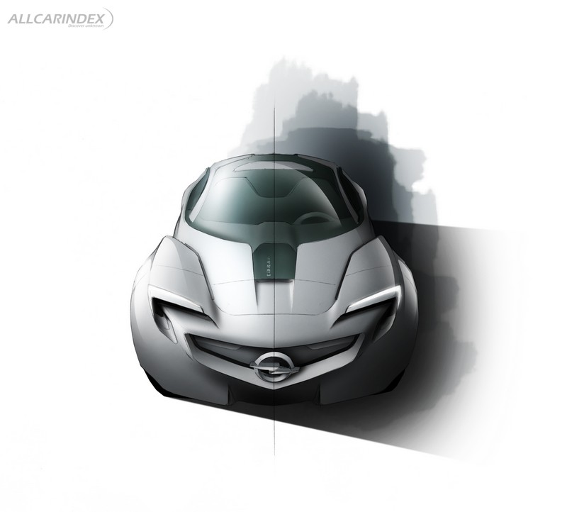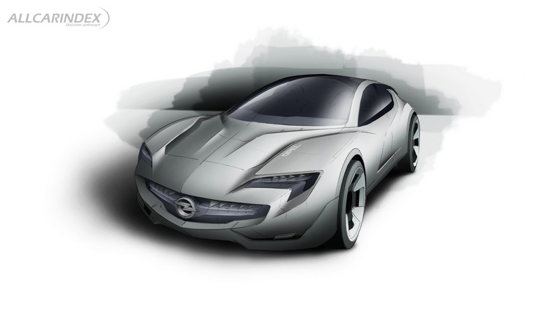 The sculpted hood, with an Opel signature central crease line, features narrow longitudinal vents on either side to draw air out of the engine compartment. The muscular fenders and wheel-arches sweep back into the side-body.