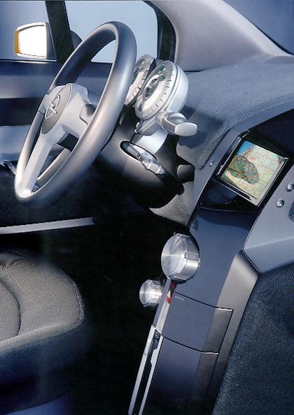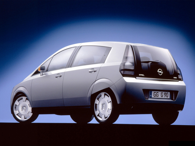 Lightweight construction, through and through The name of the four-seater Opel G90 (debut: Frankfurt Motor Show 1999) was chosen because the CO2 emission from the 60 hp three-cylinder gasoline engine is a mere 90 g per km. This represents an MVEG standard consumption of 3.88 l per 100 km. This amazing performance was made possible by the use of lightweight materials throughout, and by the extremely low drag coefficient for a vehicle of this size, namely 0.22. At the same time, the contours of the G90 give an insight into Opel's future body language. It also treads new paths in interior design.