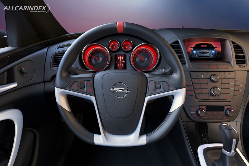 Complementing the exterior material theme, matte ebony surfaces are contrasted with rich high-gloss piano black décor finishes and structurally elegant aluminum accents, revealing a new standard of Opel aesthetics. The U-shaped aluminum graphic on the steering wheel is reflected again on the center console and the gear shifter, visually connecting the driving interfaces to emphasize Opel’s driving dynamics. The rotating navigation control is ergonomically positioned, allowing it to easily be located and controlled by the driver, without having to remove his/her eyes from the road. The four, sporty, round instruments encircled by translucent rings are backlit in dynamic red, replacing Opel’s traditional amber tones. These interior appearance solutions intentionally reinforce the dynamic ownership experience Opel provides.