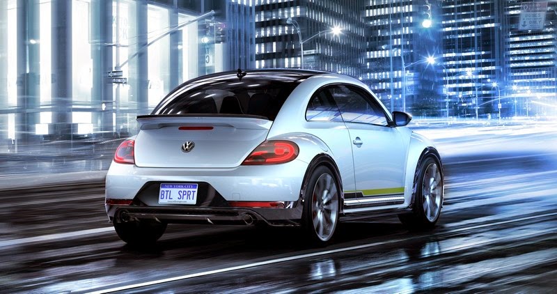The Beetle R-Line Concept1, on the other hand, clearly stands for automotive sportiness. It is powered by a 2.0 TSI engine (European version) that produces 162 kW / 220 PS of power and harmonizes well with the car's design. The Beetle, painted in "Oryx White Pearl Effect" impresses with its independent bumpers and wrap-around body paneling in high-gloss black, a diffuser also in black and a large rear spoiler. The car's sporty overall impression continues into the interior with sport bucket seats and elements in leather-carbon look.