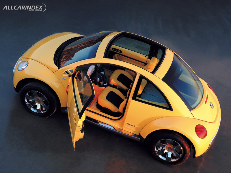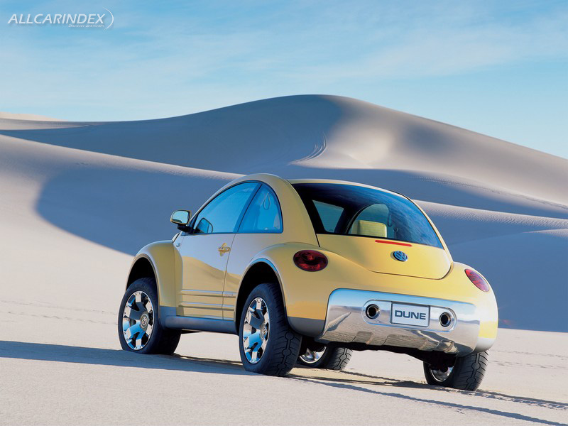 Wolfsburg / Los Angeles, 17 January 2000 - For this year's Los Angeles Auto Show Volkswagen has produced a Beetle Study that's aimed directly at the needs of sport-oriented people. It's name tells you where it's most at home: Dune. With all four wheels driven by a high-torque V5 engine, this particular New Beetle will take you on after the road has come to an end for the conventional on-road automobile.