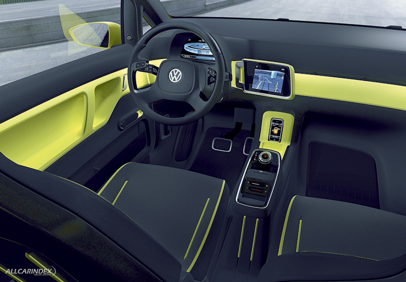 HMI: The concept car has a touch-screen based HMI (Human Machine Interface) with intelligent E-Up! specific indicators and assistance functions. During navigation, the system continually monitors the momentary load state of the batteries, for example, as well as activated energy consumers such as lights and air conditioner, momentary traffic data, elevation profiles of potential routes and the locations of available charging stations. The driver can display these "filling stations" at any time; available charging stations may be reserved within a defined reservation time period.