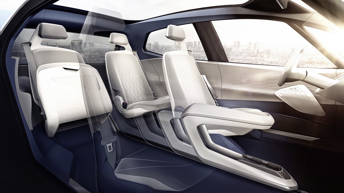 The I.D. shows a completely new Volkswagen design language for electric vehicles of the compact class. What is known as the Open Space Concept has been implemented for the first time in its interior. Somewhat shorter than a Golf, the I.D. offers the generous space of a Passat. This was made possible by the new drive concept architecture with an electric motor on the rear axle and a high-voltage battery in the vehicle floor, which enables more space and flexibility. At the same time, the I.D. already bridges over to the year 2025: the I.D. is the first Volkswagen concept car to be fully autonomous in the “I.D. Pilot” mode. The “I.D. Pilot” is activated by touching the VW logo on the steering wheel, which then disappears into the instrument panel and gives the driver an entirely new feeling of space.