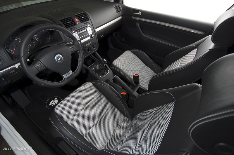 Handling prowess comes from a suspension fitted with a Bilstein coil-over shock system and APS/Neuspeed sways bars, measuring 25mm front and rear. The suspension system is adjustable for both ride height and for shock stiffness, giving the new Thunder Bunny a dual character, suitable for the street or the track. A Neuspeed short-shift kit and custom spherical aluminum shift knob, created in the design studio, put the driver in closer touch with the manual transmission. A stock GTI steering wheel was recovered in alcantara to go along with the upgraded upholstery and trim.