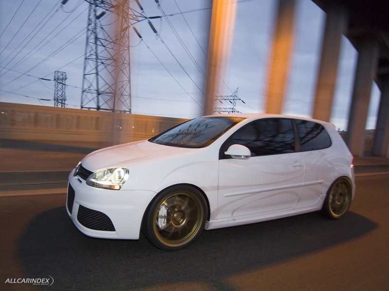 Thunder Bunny’s gleaming candy white exterior is made distinctive by several design studio touches. The concept’s body kit includes a larger central grille and a more muscular rear valance framing a twin R32-style exhaust from Neuspeed. Like the R GTI, Thunder Bunny’s paint was overlaid with graphics Jenkins calls “topographical” in pearl silver. They were meant to evoke the contours of the car’s geography or waves of air that flow over the surfaces. However they are interpreted, the pearl silver graphics make a unique visual statement as they appear to blink on and off in the changing angles of the sun.