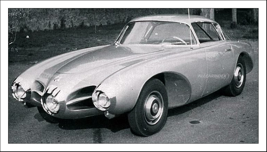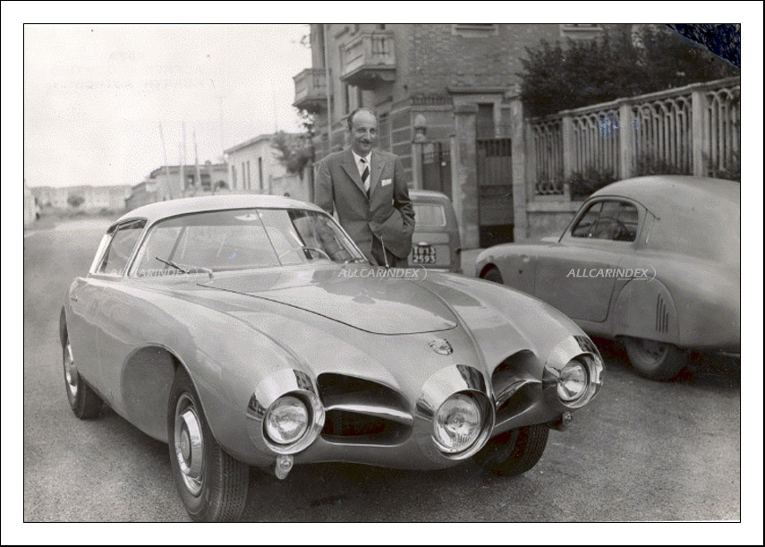 Standing out from the new models on show at the 34th Turin Motor Show in 1952 was the characterful Bertone coupé built on Fiat 1400 mechanics reworked by Abarth. The style of the Turin bodywork builder shines through, even in this almost excessively original version of the Abarth Coupé. The prototype stands out for its impressive front view, with the third central headlight reaching forward, and for the dynamics of the wheel arches which underline the car's sporty character. The large wrap-around rear windscreen and the interesting profile of the tail fins, which were taken all the way with the B.A.T. experiments (1953-1955) testify to the work which went into the lines of the car, and the focus on innovative elements which work perfectly together.