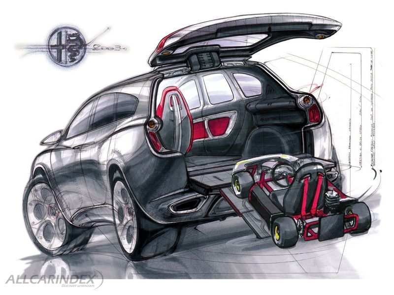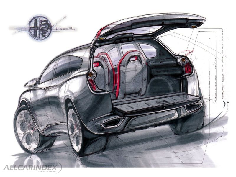 A mix of style and design that represents a distinctive crossover of cultures. The model is a fusion of different vehicle types. It combines the off-road performance of an SUV (Sport Utility Vehicle) with the driving satisfaction and handling characteristics of a compact Alfa Romeo. At the same time, it offers a versatile, functional passenger compartment typical of a Multi Purpose Vehicle due above all to clever use of space and a wide range of seat configurations. Everything comes packed into an unmistakable Alfa shape designed by the Arese Style Centre. The car would be just as at home on the intricate streets of a European city as it would on a desert track of frontier landscape.