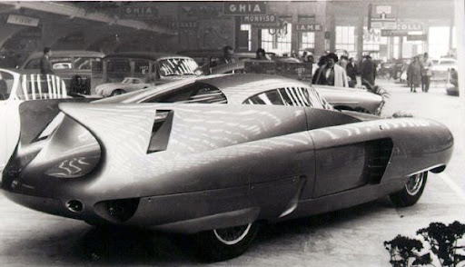 The Berlinetta Aerodinamica Tecnica 7, or B.A.T. 7, took up the styling dictates of the previous model, the B.A.T. 5, and worked them to the limit.Once again the car was based on the general idea of the 1952 Abarth 1400 coupe, with Alfa 1900 Sprint mechanics. For this 1954 design, as for the other B.A.T. models, though less evidently, Bertone added some elements from his experience working on wing profiles in the aeronautical industry. The result was the exaggerated shape of the large, curved tail fins.