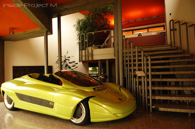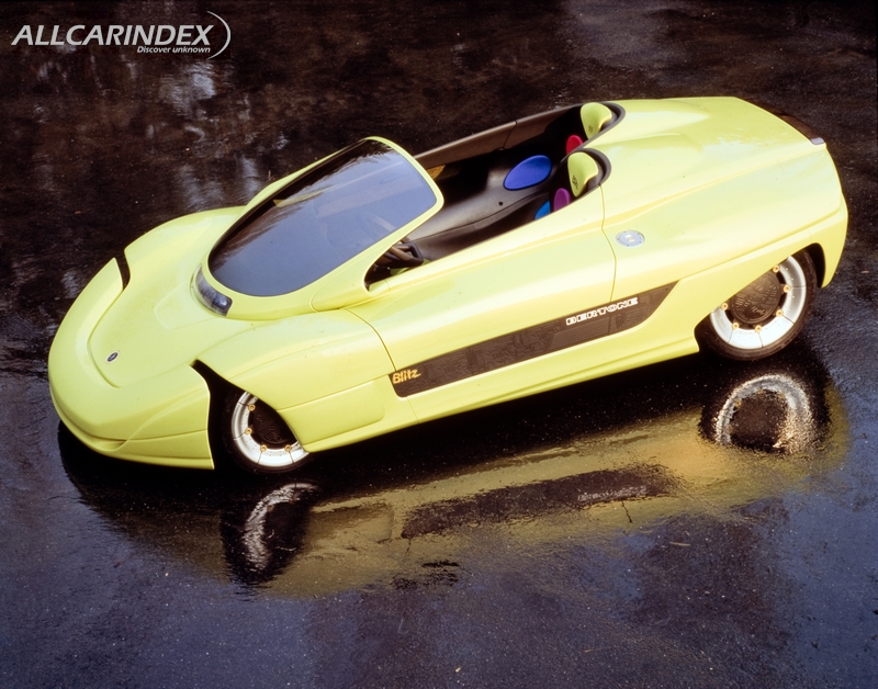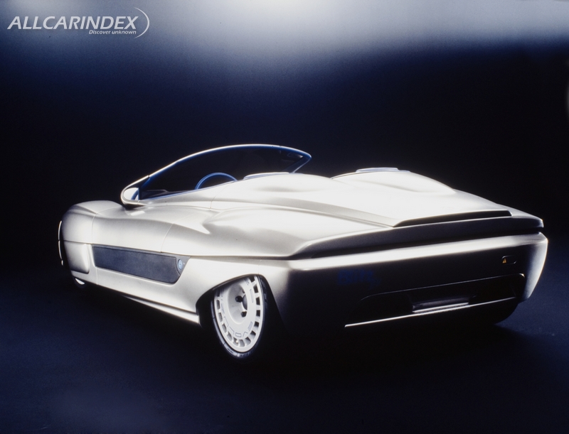 The theme of the 1992 Turin International Motor Show was "Man and the environment", and Bertone, who had been urged by many to come up with an electric vehicle, captured the attention of experts and critics with the Blitz. This prototype was an open two-seater show car which experiments both with electric traction and with new materials for the chassis and bodywork. To accomplish the desired "lightness", the body was created by Albatech in 25CD4 steel tubing, fixed with fibreglass panels with epoxy resin and a Roacell core. The bodywork is entirely composed of a composite material (epoxy glass and autoclave-produced nomex), with interiors in carbon. The design of the body recalls the exciting open two-seaters with sporting aspirations, and this is blended with a lovely retro touch of out-of-line seating, with the driving seat slightly in front of the passenger seat. Another feature of great impact was the solution created for the doors, which are front-hinged and open vertically, a concept taken from the Alfa Romeo Carabo created by Bertone in 1968 and which had subsequently been used on a succession of other models.